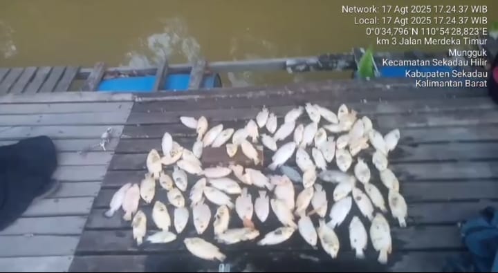 Puluhan hingga ratusan ikan peliharaan di keramba mati setiap hari akibat pencemaran sungai yang diduga kuat berasal dari aktivitas tambang emas tanpa izin di wilayah hulu Sungai Sekadau.