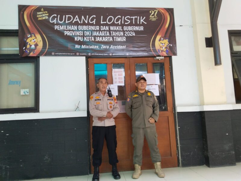 Jakarta – Personil Polsek Jatinegara Polres Metro Jakarta Timur melakukan pengamanan gudang logistik Pilkada DKI Jakarta 2024 yang menjadi tempat penyimpanan logistik PPK Kec. Jatinegara Jakarta Timur. Kamis (28/11/2024).