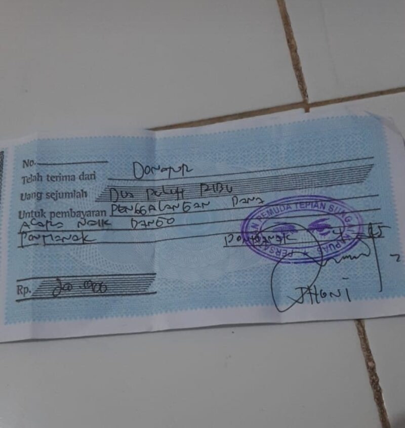 “Ketua DAD Kota Pontianak dan Panitia Naik Dango II sangat keberatan atas tindakan ini. Kami minta aparat kepolisian segera menangkap para pelaku. Kami juga memiliki bukti berupa kwitansi pungutan liar yang mereka berikan kepada masyarakat,” tegas Nenes.